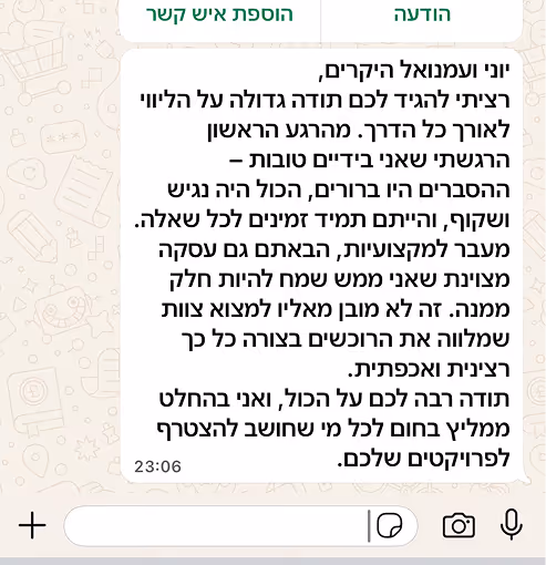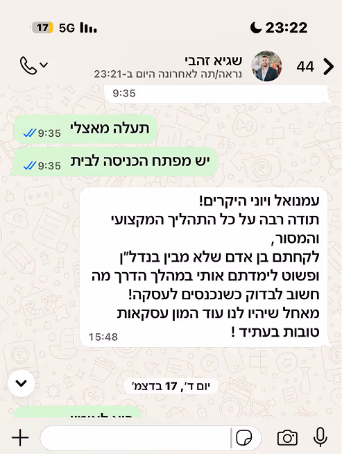 אחרי שני עשורים בתחום, המטרה שלי היא לוודא שאף לקוח לא נכנס לעסקה לפני שווידאנו שהיא בטוחה, כלכלית ומנצחת.